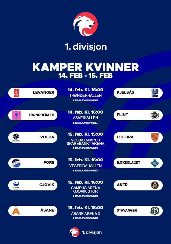 Her finner du oversikten over hvor og når kampene i 1. divisjon kvinner og menn spilles i helgen.