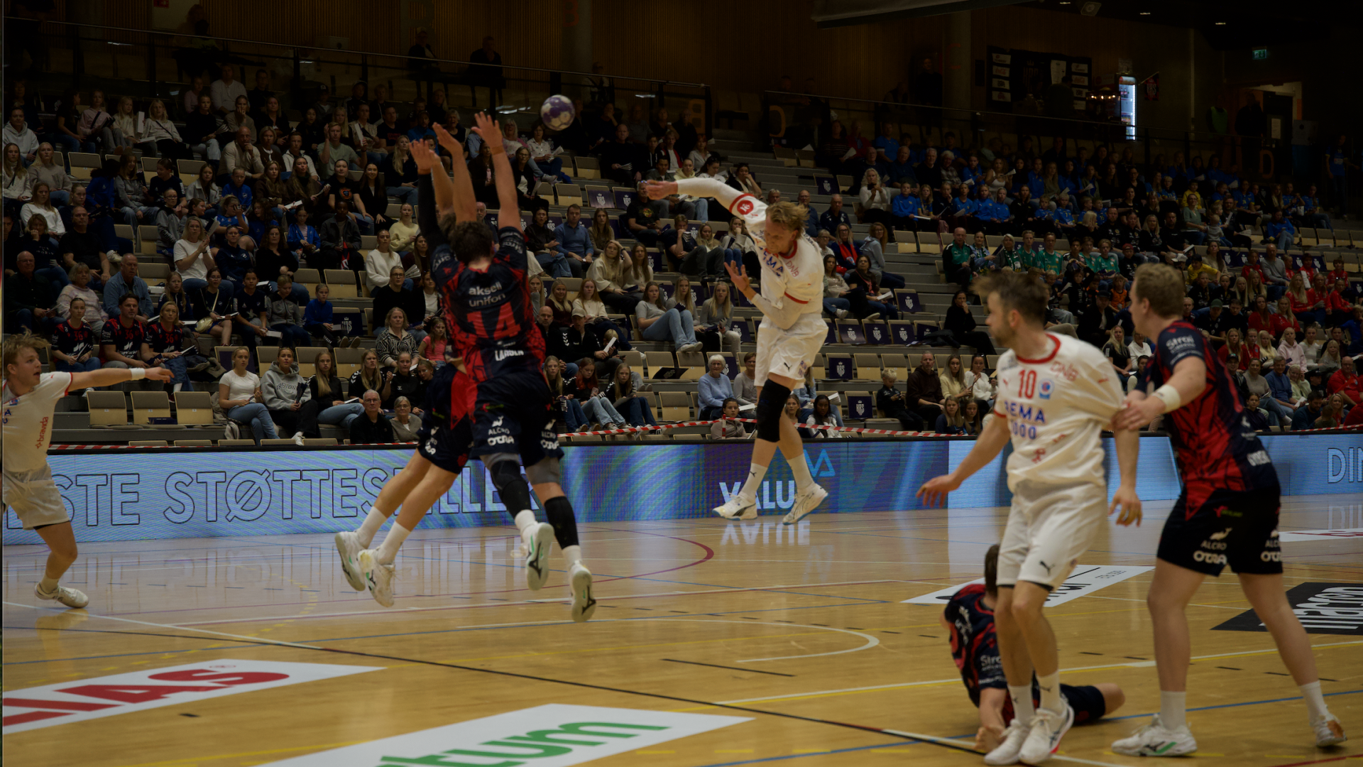 Til søndagsunderholdning i Aquarama i Kristiansand. Hjemmepublikum fikk altså mye å juble for i én time – minus kampens siste skudd. Kolstad og prestasjon, Stian?