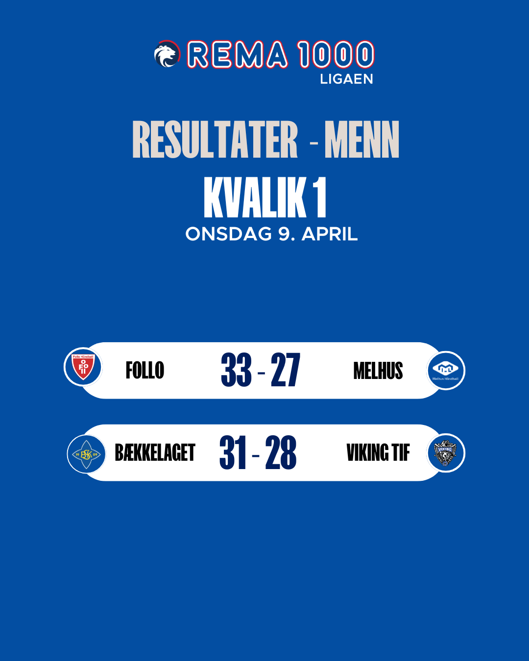 I kvalifiseringen sikret både Follo og Bækkelaget seg gode utgangspunkt. Follo vant 33–27 over Melhus, mens Bækkelaget slo Viking TIF 31–28.