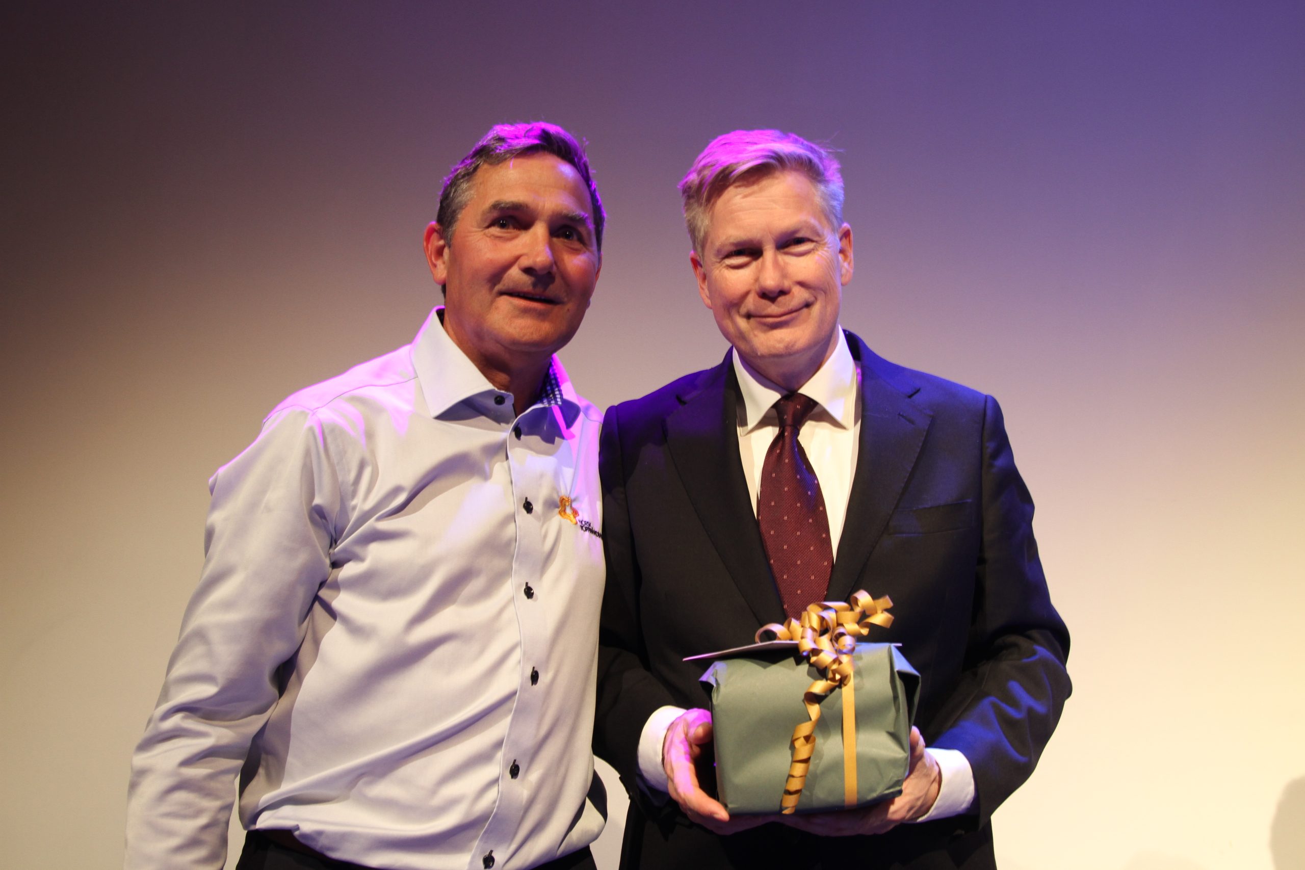 Norsk Topphåndballs daglige leder, Hein Barthold, rundet nylig 60 år, noe som naturligvis ikke gikk upåaktet hen når topphåndballen først var samlet. Styrelder i Norsk Topphåndball, Trond Knutsen, overrasket jubilanten med flotte ord og en presang av den spennende sorten, og med en rungende fremføring av Happy Birthday to You ble den store prisdrysskvelden rundet av.