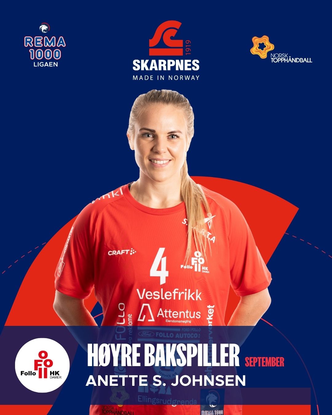 En av månedens mest presise spillere. Sundfær Johnsen har vært ekstremt effektiv og en viktig brikke i Follo Damers angrepsspill. Over 87 % uttelling på nesten 7 mål i snitt er klasse.