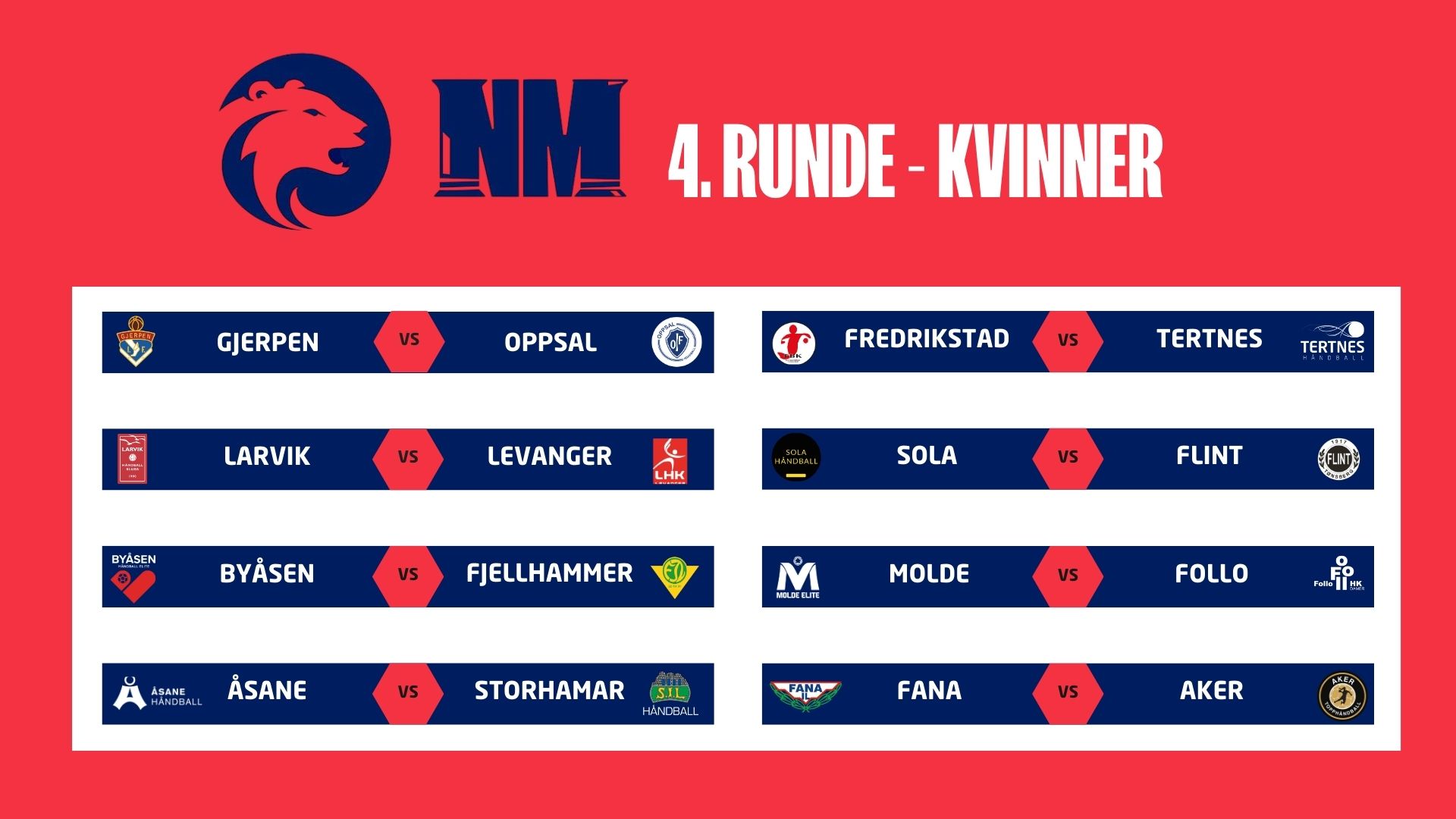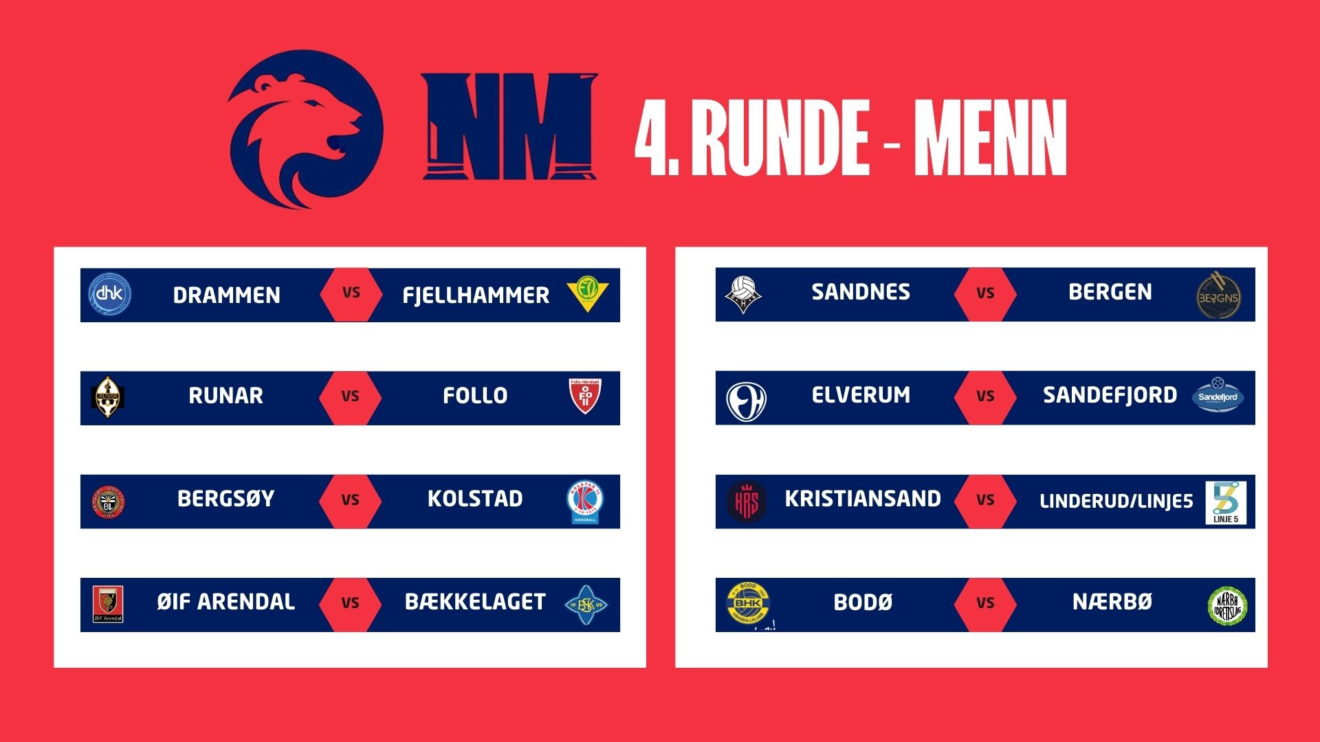 Veien mot NM-finalen i Unity Arena 28. desember fortsetter!I dag ble 4. runde i NM trukket på Ullevål stadion