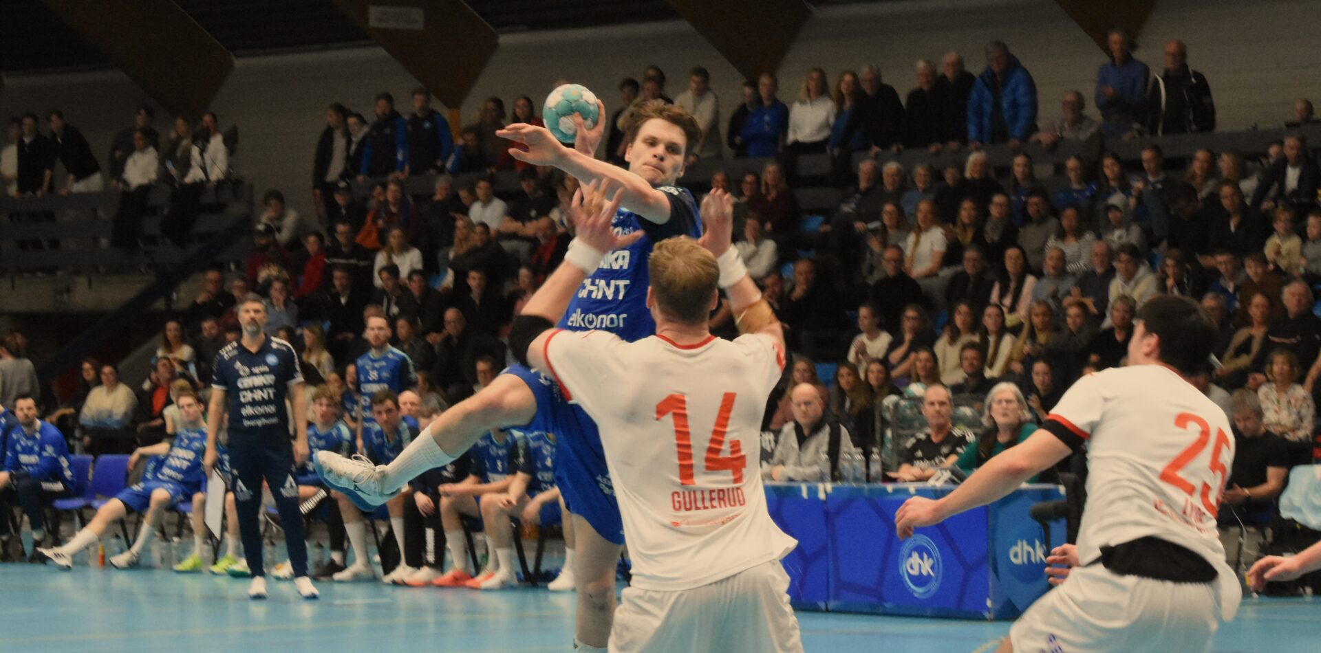 DHK fikk ikke akkurat noen drømmestart foran hele 2892 tilskuere. Kolstad satte opp Sander Sagosen i en mot en – dueller mot DHKs midtforsvar, og for Sondre Ovid Skovli ble det en tøff opplevelse. Sagosen scoret lagets tre første mål, og assisterte til 4-0 etter fire minutter. En Sagosen som stoppet på fire mål og ni målgivende pasninger!